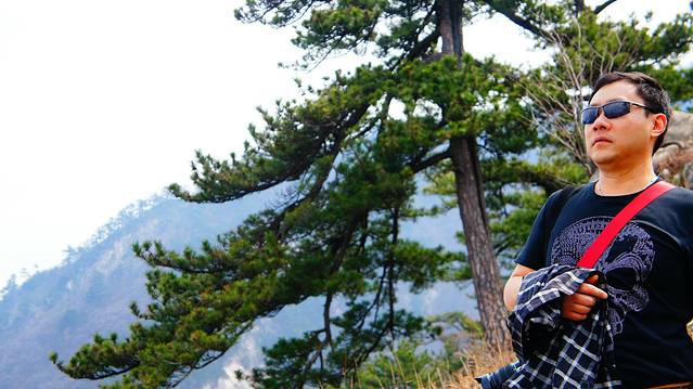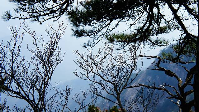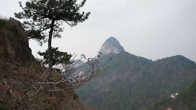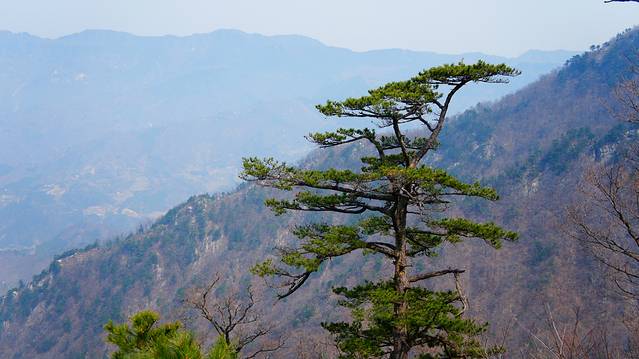 当年这里几乎没游客,爬至最高处,一路上连买水的都没有,完全考验体力。下午4点,才下来,又渴又饿,真是活受罪啊 。只是在山腰上有一段的松树有些像黄山松,其他没啥景物了。