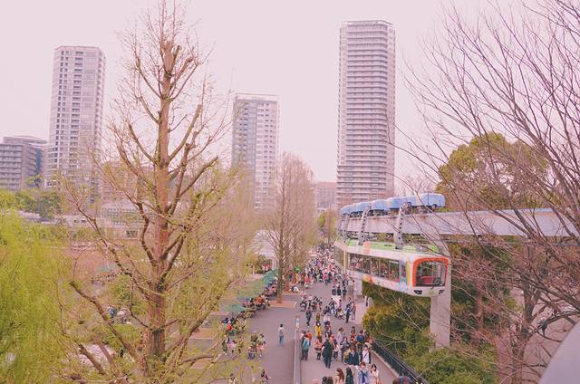 连接东园和西园的交通工具悬挂式的电车,样子太酷了!可惜,由于老化,去年年底开始停运了呢。。。