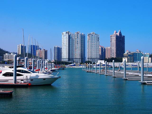 我们一行人吃完早餐后10点左右到达了码头 码头这边很宽阔, 高楼 游艇 帆船 大海 结合在一起的美景,有一种别样的风味, 很适合凹造型 拍大片 ~来坐船时还看见了一对新人来这边拍婚纱照~影楼公司真会找点