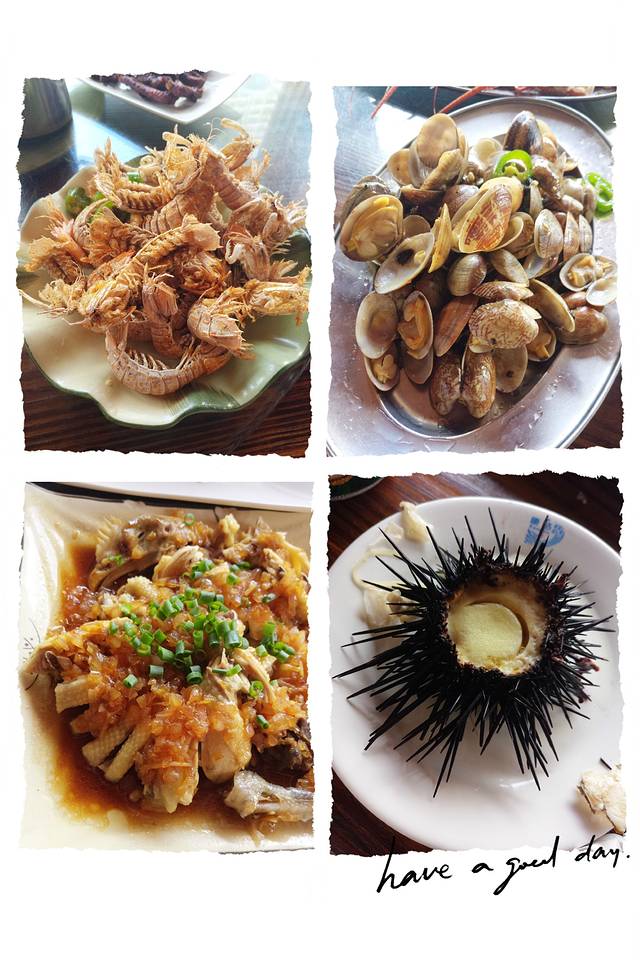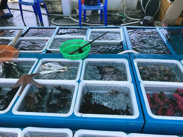 我们挑选了一些贝类 一条鱼 海胆 虾等等 拿去了餐厅帮忙加工 加工费问了几家基本都是15元一斤