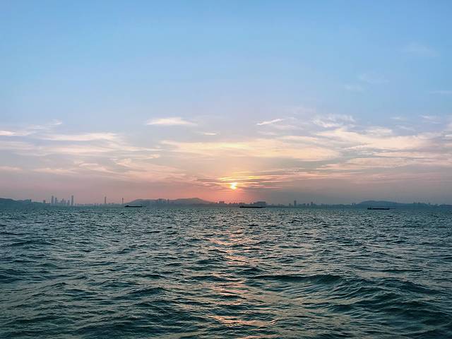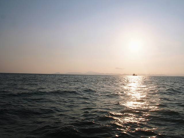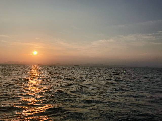 回去的路程我一直在二楼甲板那边吹海风看着美景 沉静在这片美好中 几个朋友早已经呼呼大睡了 很幸运看到海上日落 太阳缓缓的与海平面合二为一 然后夜色来临 而我只能静静的感受着时间的变化 用相机和手机记录了这一瞬间的美好