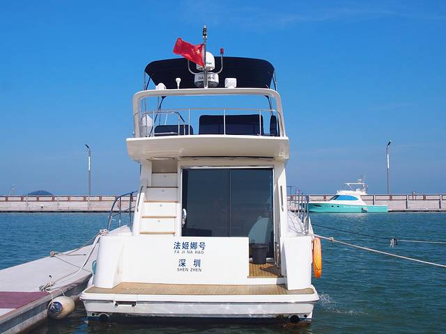 我们选择的是在珠海国际航海文化中心;高美人游艇俱乐部的45英尺商务船"法姬娜号”,核载10人,游艇一共3层,相当于水上别墅,一楼休息舱,内设有沙发,电视,房间,小厨房,卫生间,储物间;二楼观光甲板,三楼沙发休息处观景露台,船长驾驶位(据说这搜艇价值几百万,果然有钱人都是玩艇的~羡慕的小眼神,我们也来体验下资产阶级的快乐哈哈哈哈)