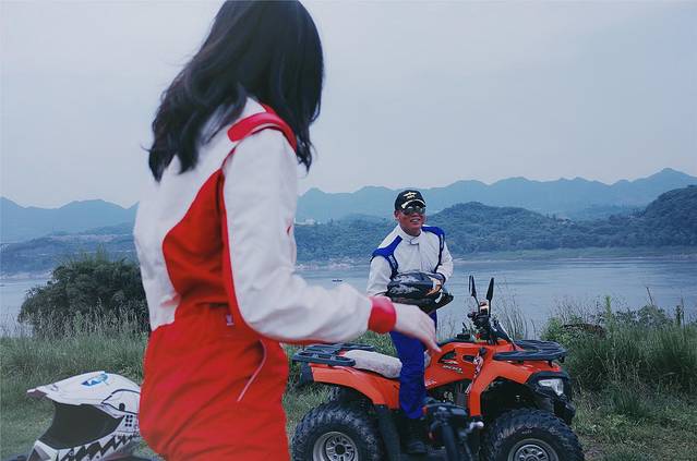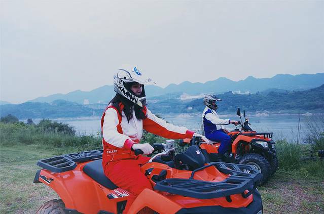 来了这里,不体验一下肾上腺素狂飙的感觉怎么甘心?在速度与激情中放飞自我,在青山绿水中解读生命真谛。全地形越野车是一人一车哦,自己掌控自己的方向盘。换好赛车服,上车之后,教练会让我们先自己练习,在江边随意开开,风景也是很不错。熟练后就把我们带到一个场地里面,各种陡坡随意玩。驰骋草场,不禁放声高歌:“我曾经跨过山河大海,也穿过人山人海。”