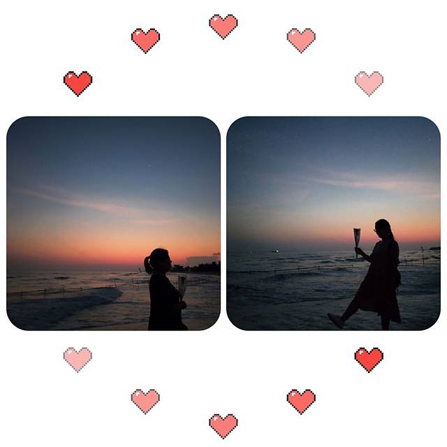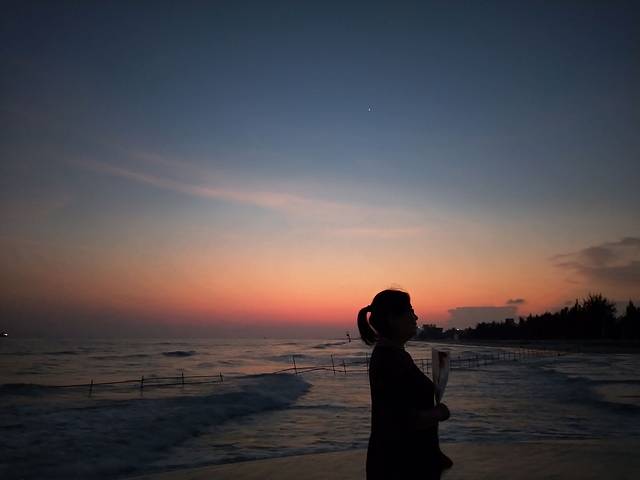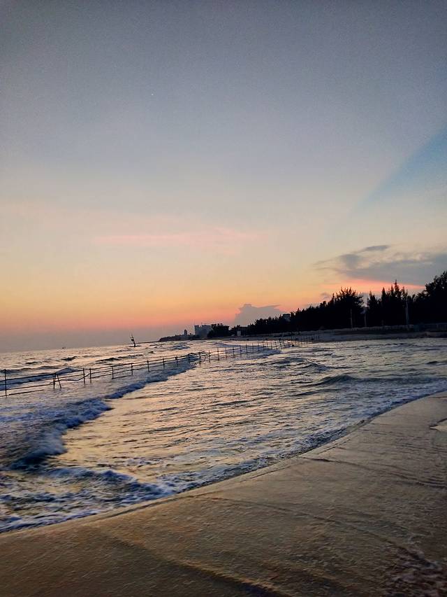 下午6点多去的银滩,涨潮了没法下海,不过拍照正美