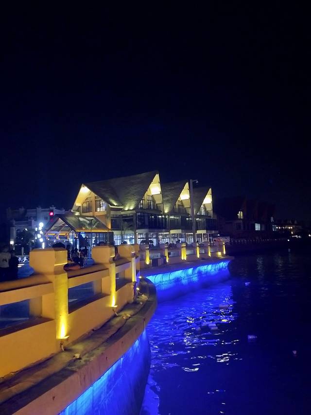 从老街出来,走到尽头就是外沙岛,有木栈道通海上,晚上人很多,夜景不错