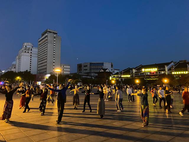 巴陵广场到了晚上把整个岳阳的人文文化展现的淋漓尽致,交谊舞,鬼步舞,中国鼓,优美的歌声