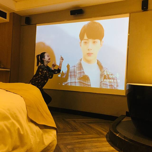 订的是一间浴缸投影房间,献给你们看一下房间照片一睹为快
