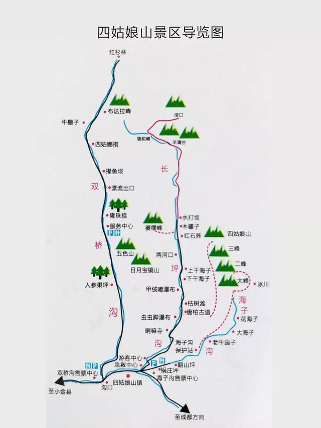 双桥沟是四姑娘山开发最为成熟的一条沟。全程不需要步行,有大巴车在每个景点停靠。