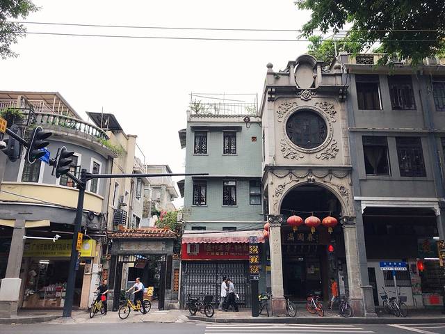 经过了一个骑楼。和海口的骑楼老街有一点点相似。这边的特别之处在于一面是洋楼,一面又是南粤民宿。视觉上看还是蛮有意思的。