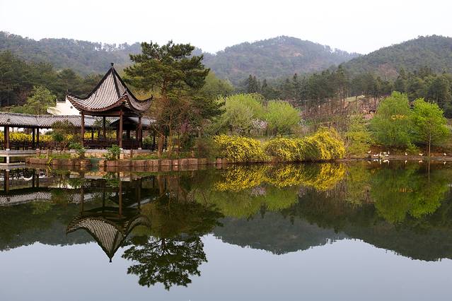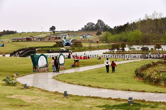 野村谷景区占地13000多亩,分登山区与公园区两部分。登山区有月亮湖、狮子山、杜鹃谷、广寒宫景点;公园区占地5000亩,有百草溪、梯田菜地、海堂谷、酌道酒庄、草原、梅花园、荷花池、桃山、月季园、孔雀园等景点。在野村谷走一圈,我们看到这里不仅是一处郊区花园,还设置了很多体验项目。