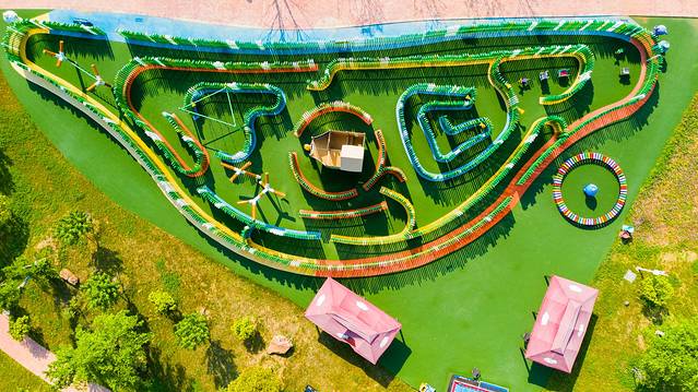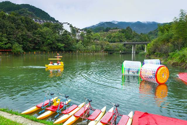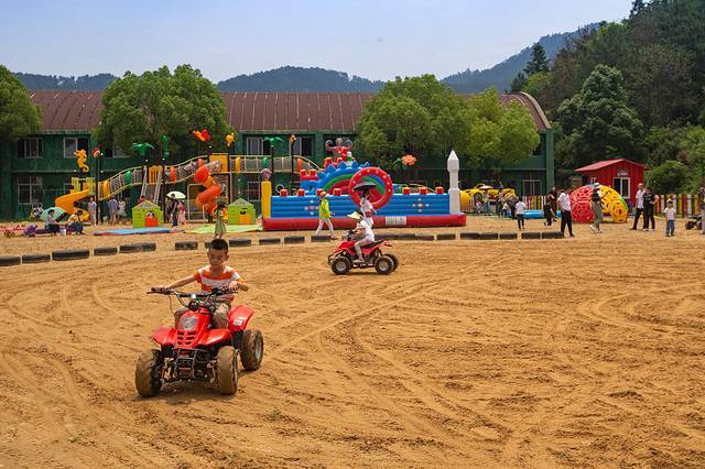 园区里有二十四节气梯田菜地、亲子厨房,还有鱼虾荷塘、水上乐园、沙滩乐园、玻璃滑道、七彩滑道、采茶炒茶、瓜果采摘、陶艺制作、CS基地、团队拓展基地、丛林探险、皮划艇训练、卡丁车赛道、草原野营、篝火广场等项目。