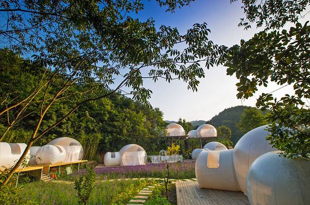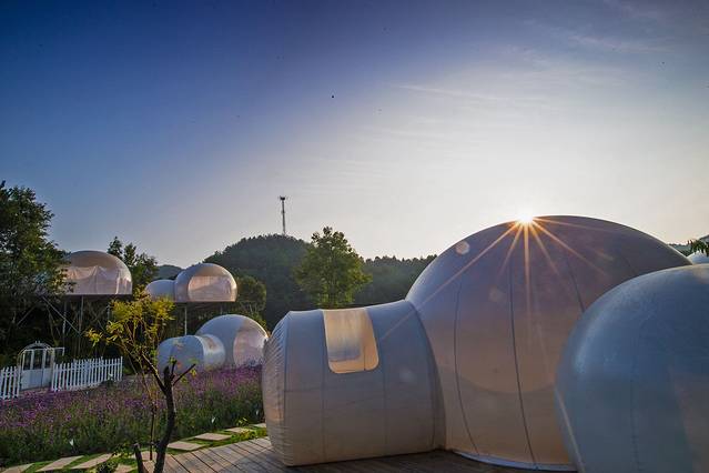 在锦里沟,有一处很有梦幻情调的住处星空泡泡屋,独特的造型既卡通又梦幻,住在这样的小屋里,可以躺在床上数星星。星空泡泡屋坐落在郁郁葱葱的山林下,飞流直下的瀑布前,碧绿的湖水之畔,环境优美,空气清晰,是度假的理想胜地,特别是孩子们最喜欢。