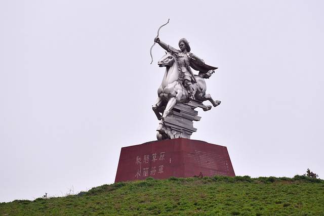 传说这里是木兰将军年少时练习骑射的地方,这片开阔的草场与周围秀美的山水景观形成了鲜明的反差,却与“万里赴戎机,关山度若飞。朔气传金柝,寒光照铁衣”这样金戈铁马的将军豪气更相符。