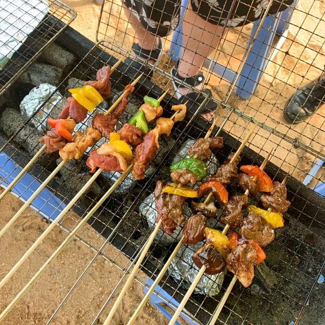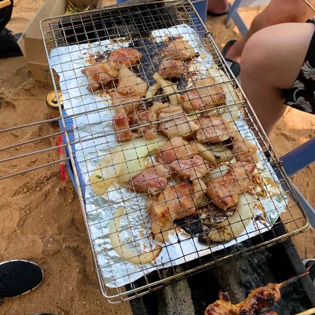 中午我们回到山海广场,打算买点肉在海边烧烤,顺便把今天早上抓到的海鲜一起烤了,烤肉就在红海烧烤那条街烤肉店买的,他家在鲅鱼圈挺出名味道不错,炉子和碳她家都有,20块钱一套。