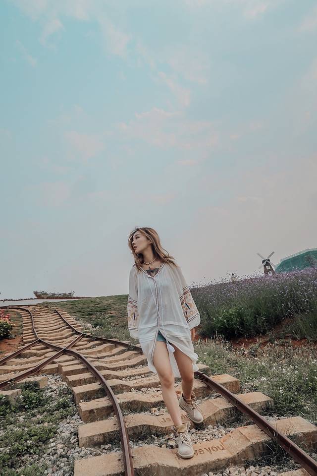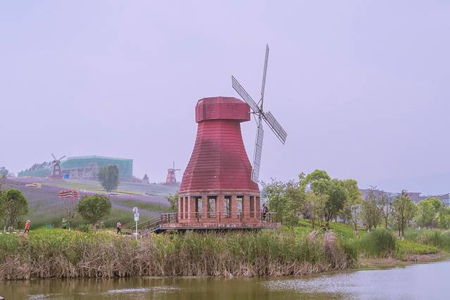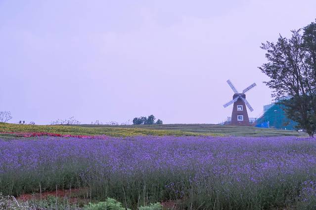 沿着薰衣草海一直走,可以看到小铁路,风车、太梦幻了
