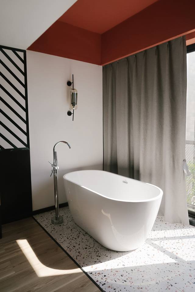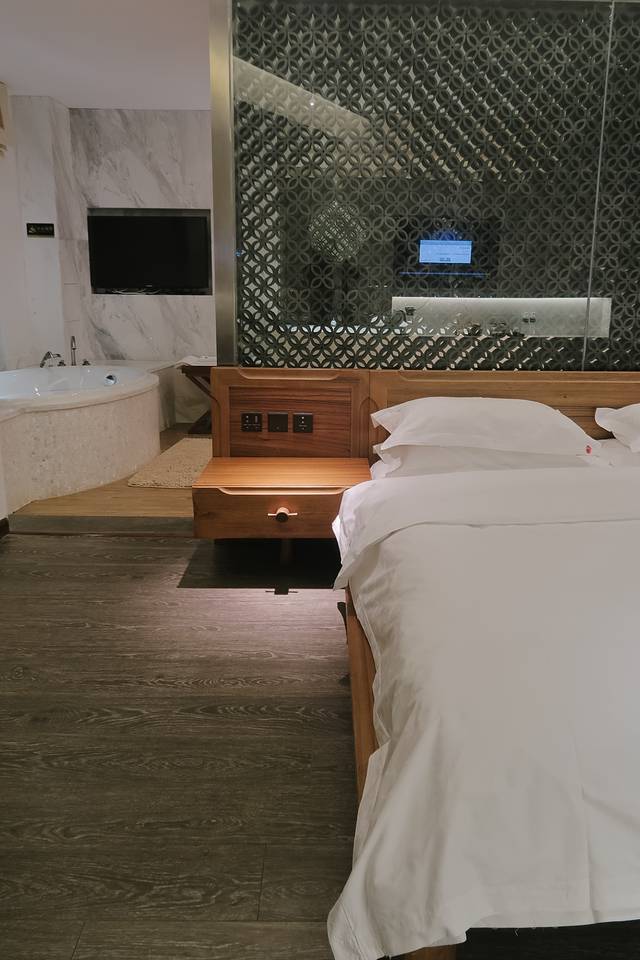卧室有大床、浴缸、电视、