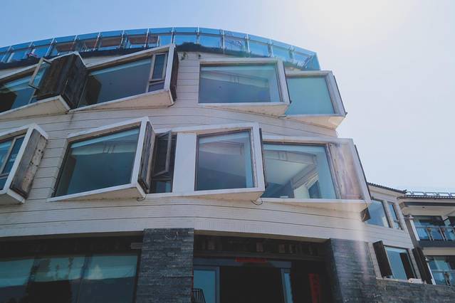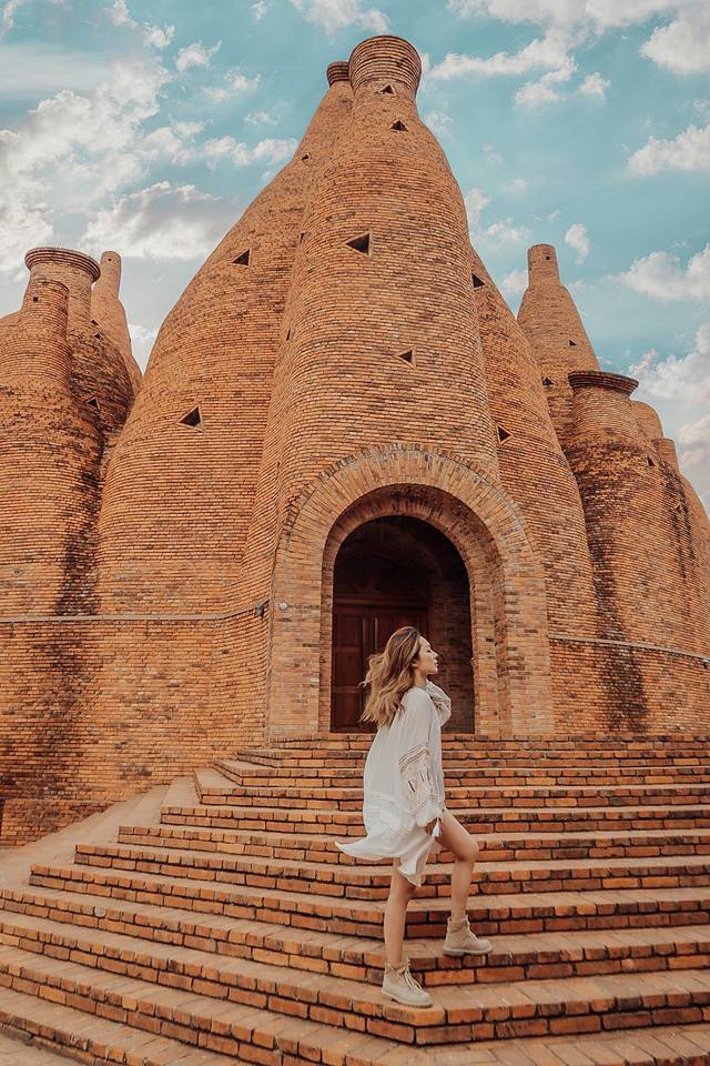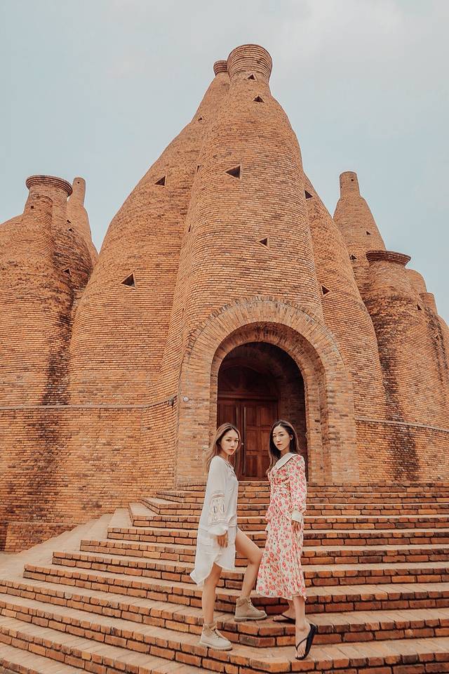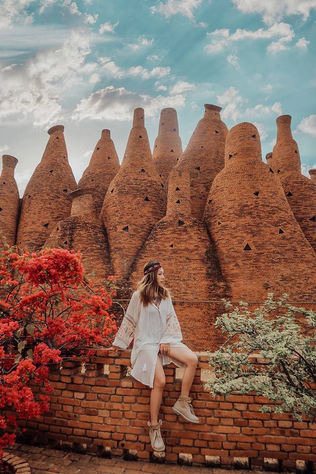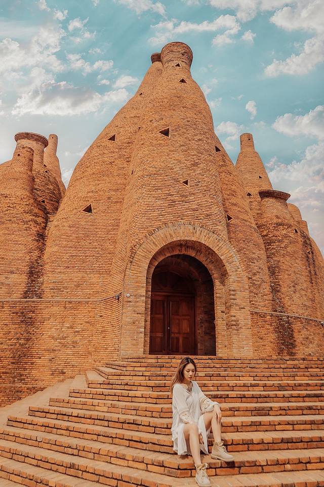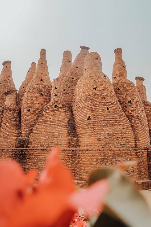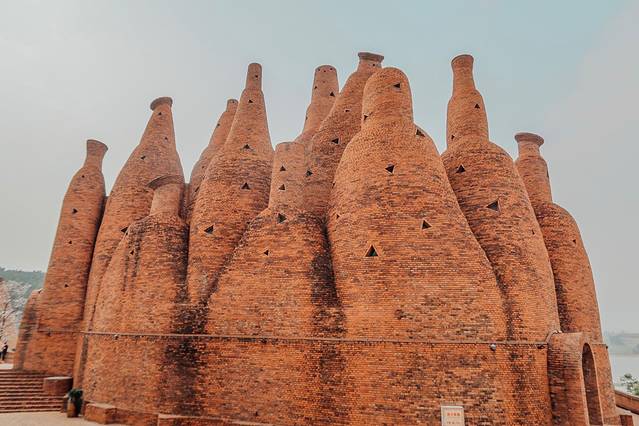 万花筒艺术馆外墙红砖砌成,形态看上去很像酒瓶子。它的设计灵感来源于咱们小时候经常玩的“万花筒”。花团锦簇,穿个民族服饰,特别的异域风情。