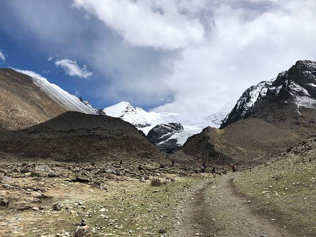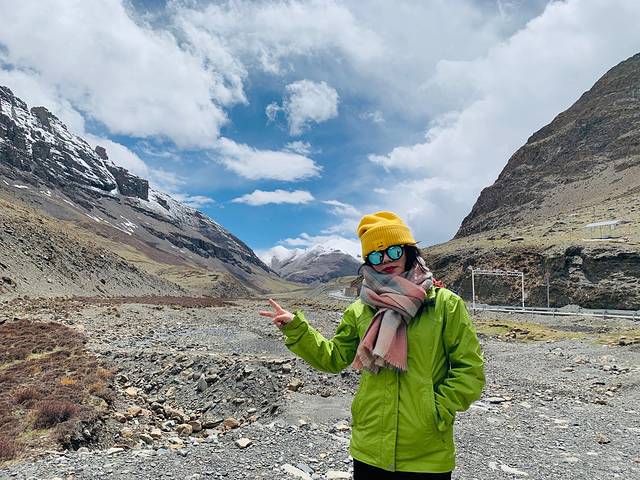 一直在路上,去往卡若拉冰川,在行车的路上,我 就是我 不小心睡着了,然后就高反了,一路睡到景点,再次醒来的时候,头痛欲裂,手脚酸痛,感觉要死了,分分钟想回家,此时,司机还不停的说赶紧吸氧,不然要脑水肿,但是愚笨的我不会吸氧,于是我吃了一颗芬必得,然后下车去呼吸新鲜空气,此时下雪了,这冷风呼呼的吹,我慢慢的走去找同伴,每个人都鼓励我不要想着高反,去看看别的风景,一直分散我的注意力,这个地方有5000+的海拔,司机开车慢慢下海拔,慢慢的缓解高反