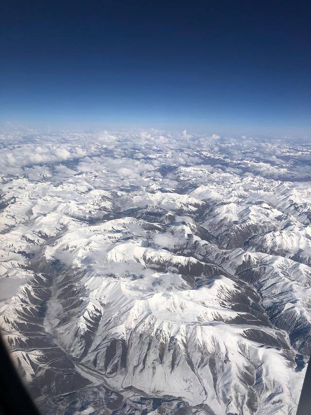 在换登机牌的时候特地嘱咐要靠窗的位置,空中看雪山还是很壮观的