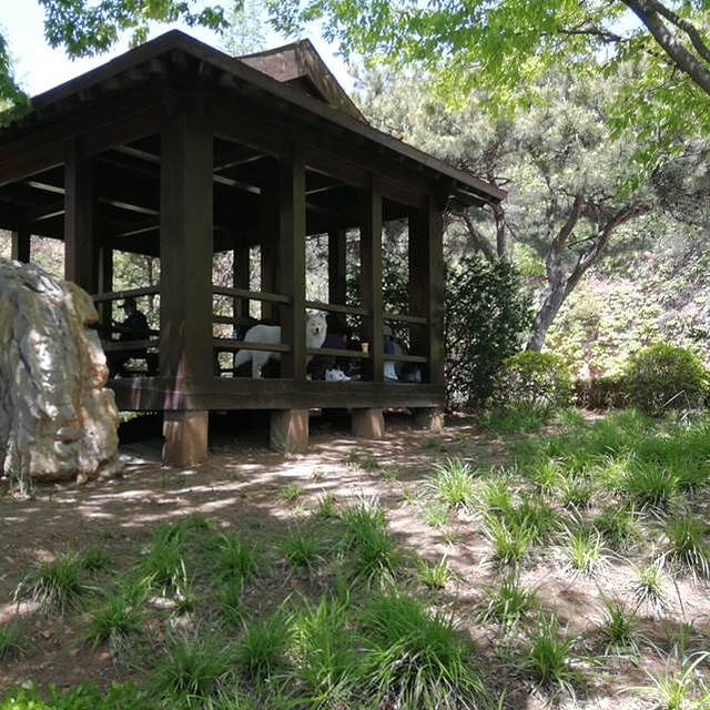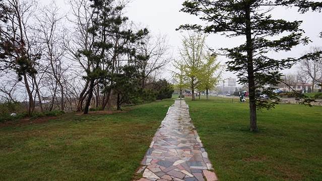 公园里面有几个小亭子。不时有人在这里休息。我们一路走过去,从滨海路一直走到了亲海路。慢慢地,人也越来越少。所以,在公园逛还是要往公园深处去。人真的会少的。
