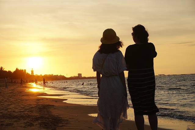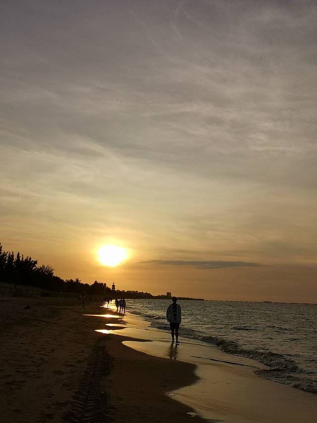 中午休息了一会,下午四点多我们到了假日海滩,人很多,可以自己带泳衣去游泳,不过我们没有找到换衣服和冲洗的地方,大概是得提前准备好吧。这里虽然不像三亚海水那么清澈,也不像陵水琼海那边那么安静,但这里却有独特的市井气,这大概就是当地人的生活吧,茶余饭后可以来这里走走,我们也像他们一样在这里坐了很久,并且等到日落的时候,余晖真的很美,舍不得离开。