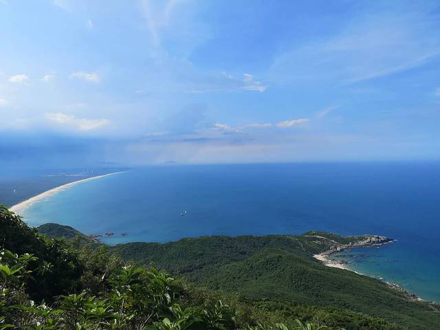 放下行李,我们在酒店里吃了午饭,稍作休息后,我们去了铜鼓岭景区,景区门票加观光车三个人285,进去后是坐景区的观光车上去的,弯路坡度都很大,我还不小心掉了水杯,好在司机师傅听到了声音,及时停车让我把它捡了回来,帽子也一定要带好,风很大。景区不算太大,人也不多,登到最上面可以看到一个海湾,非常好看,感觉海水没有一丝污染,拍照还是很不错的。