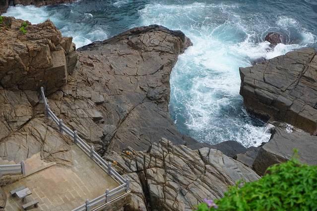 这里面应该还有几个网红拍照打卡的地方,但是还是因为天气原因,我们没有刻意去找,直到出来,我也没看到。等到我们快要出去的时候,雨变小了,我们还在最下面的海滩上停留了一会,人很多,但是海水倒是非常清澈。