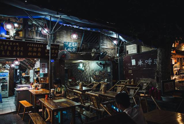 而当夜幕降临,华灯初上;宽窄巷子有了 成都 本地人的身影。