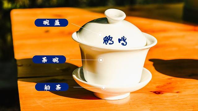 碗盖为天、船茶为地、茶碗为人 ,把茶水一冲上,碗盖子一盖,便有了“天地人和”的意境。
