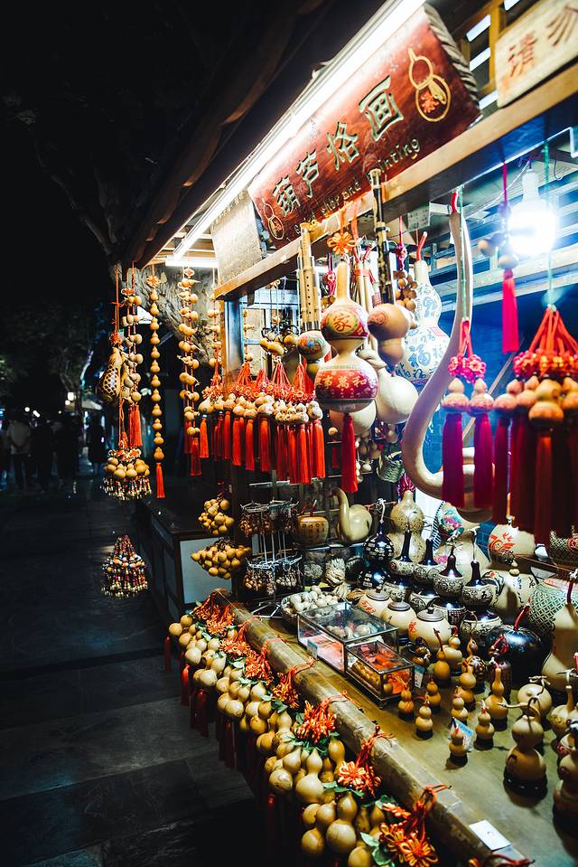 宽窄巷子随处可见的是这些小摊贩售卖各种手工艺品。