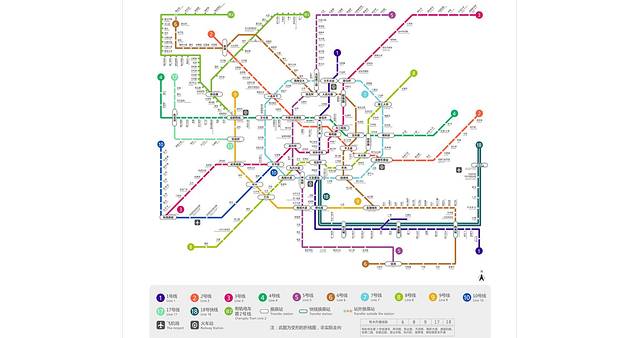 1号线、2号线、3号线、4号线、5号线、7号线、10号线、蓉2号线