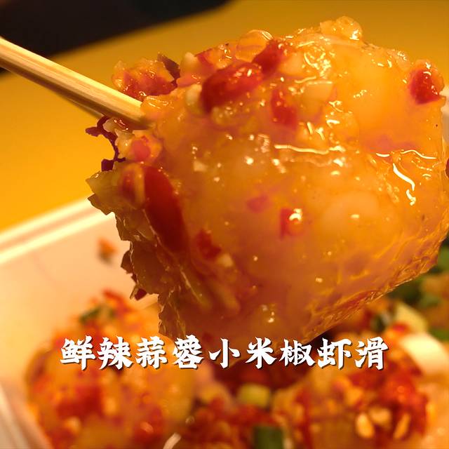 他们家的虾滑是把虾去掉外壳,再通过上千次的摔打后,让虾肉变得有黏性。完整虾的加入,让虾滑既有了爽脆的口感又保持了虾味的浓郁。