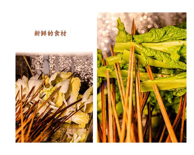 撸辣家的热锅串串也是一定要吃的。作为一个老 成都 来说,看一家串串的菜品如何,我通常是先去看素材区,特别是这种叶子菜,一旦不新鲜事一眼就被看出来的。
