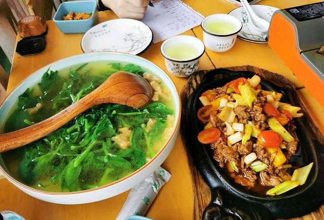 位置在束河古镇束河古镇讲真是一个很安静的地方,饭店位置还是比较好,很容易找到我们坐在了窗户边上,讲真很舒服点了个那排骨火锅,味道很棒,特别是汤有淡淡的咸味,特别好喝菠萝牛肉里面的肉融合了菠萝味点个赞