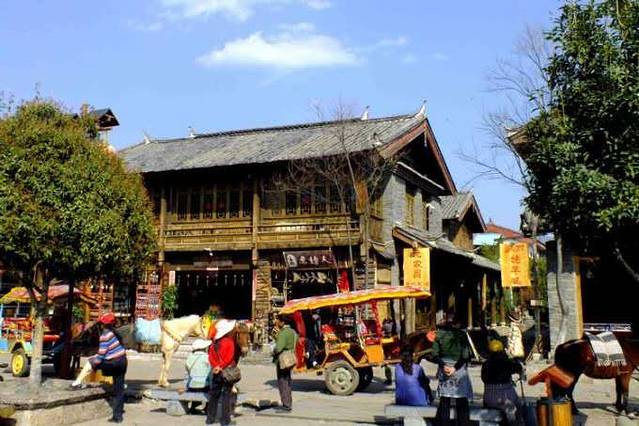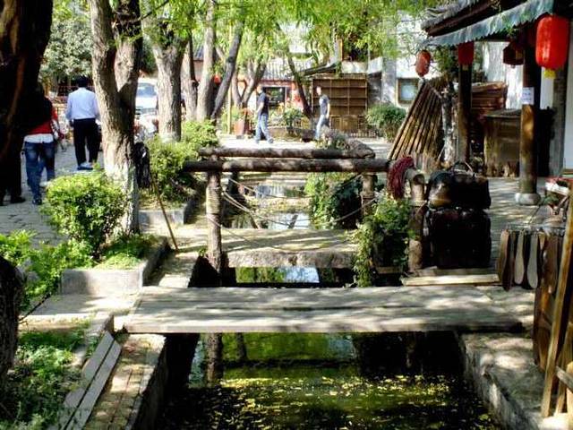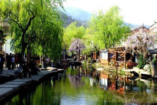 束河本是个宁静的小村庄,距离丽江6公里,因村中一条青龙河蜿蜒如束带而得名。潺潺的渠水穿村而过,透明清亮,这里的水来自于清澈见底的九龙潭。临水边有座绿树掩映的小楼,名叫三圣宫,又称玉泉寺。村落中央四方街旁有横跨青龙河的明代大石桥“青龙桥”,据说是丽江境内最大的石拱桥。当年徐霞客到此,曾写下“过一枯涧石桥,西瞻中海,柳岸波萦,有大聚落临其上,是为十和院”,“十和”为束河的古称。束河早年曾以皮革业闻名,“束河皮匠,一根锥子走天下”,束河人靠这门手艺闯荡天下,据说龙泉寺中所祭拜的就是皮匠祖师。进束河古镇,可以直接去青龙桥和九鼎龙潭,那一带才是古镇原初的面貌。中和路有个茶马古道博物馆,馆内的展品不多,大致能了解昔日的束河。其中有个展馆——束河皮匠历史展览馆,专门展示束河早年的皮具工艺。曾有人把束河比之十年前的大研,但现在的束河似乎早已为旅游而“献身”,被一家旅游开发公司打扮得花枝招展,妩媚动人