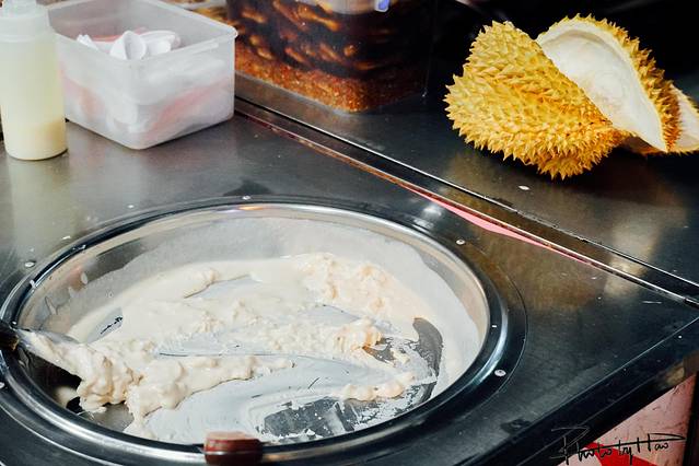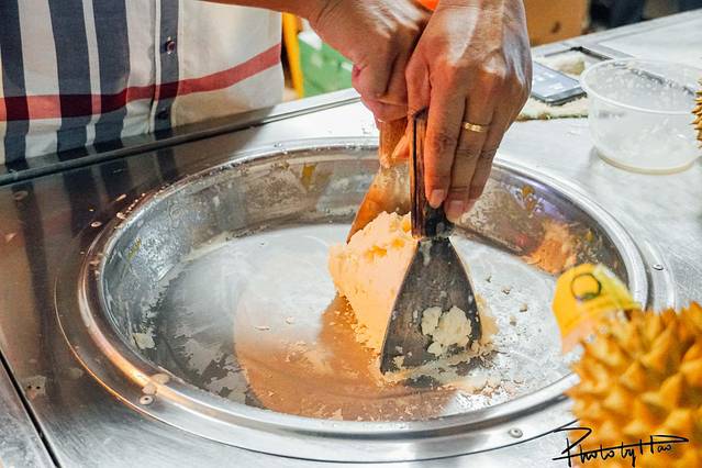 店里的阿叔一边说着我听不懂的闽南语(?还是什么语),双手一边熟练的在炒最招牌的榴莲炒冰。