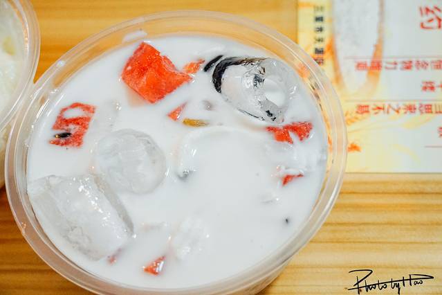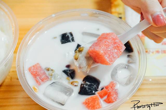 阿菊家的清补凉就是水果,绿豆,仙草和椰汁。椰汁不是那种特别香浓的,淡淡的椰汁喝着莫名觉得很安心很健康。