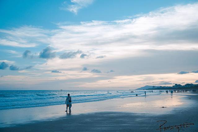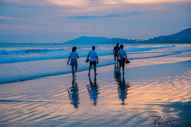 也是在一个平常的傍晚,提着鞋子赤脚在温热的沙滩上沿着海岸线慢慢的走着,聊着一些无关痛痒的天,时而高声时而沉默。