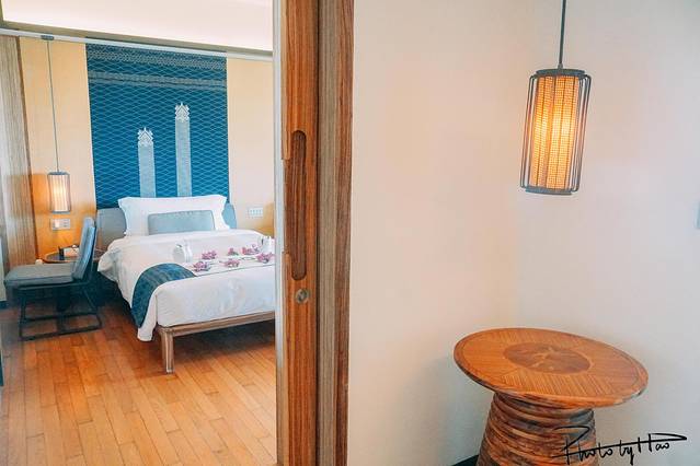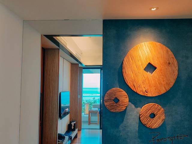 房间装饰十分特别的使用了 海南 当地的黎族工艺进行布置,包括墙壁,推拉门扇,装饰画等等,在不经意间透露出民族风情。