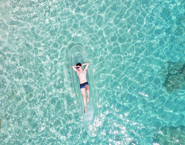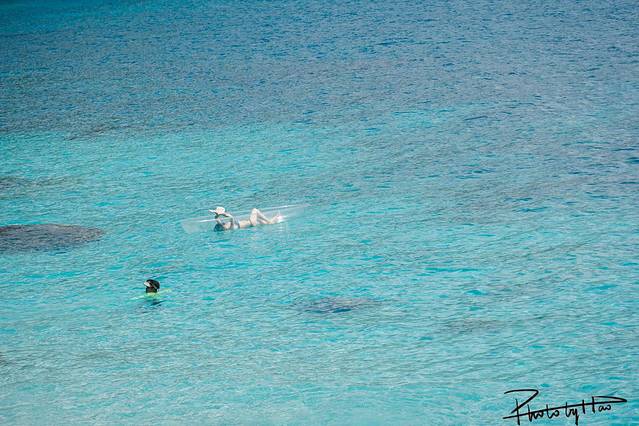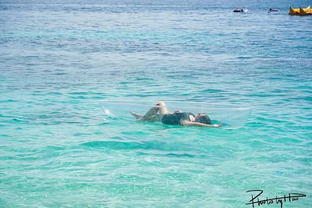 百福岛的一日游都有一个固定项目就是玻璃船航拍,每个客人都可以去拍,效果真的很赞,算是很多人在网上看攻略介绍的时候都会看到的照片。