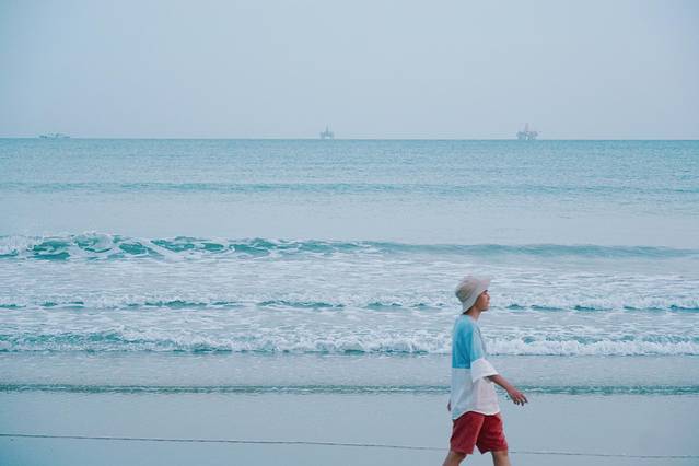 距离热门的 大东海 度假区只有10分钟左右的车程,从一条不起眼的岔路走进,朝着鹿回头公园的方向,就来到了小 东海 。