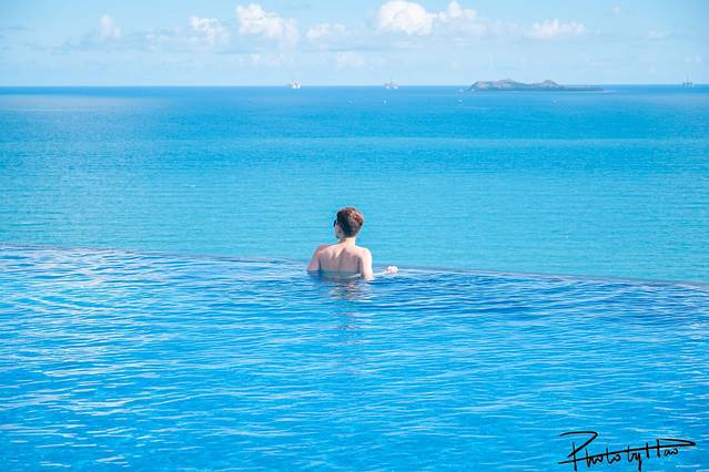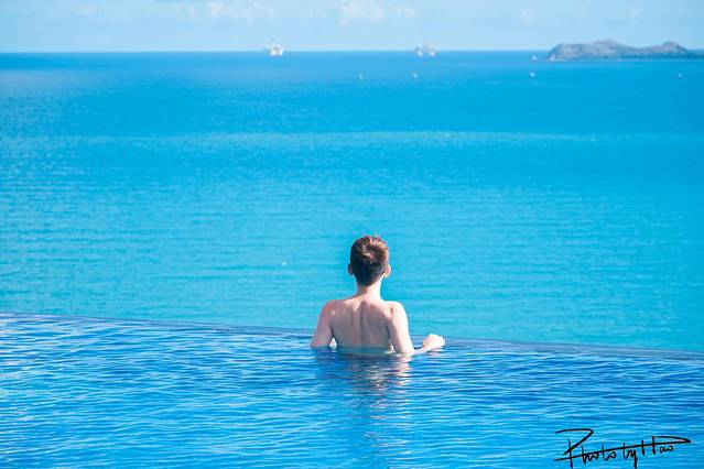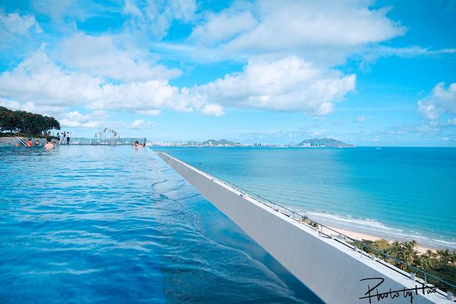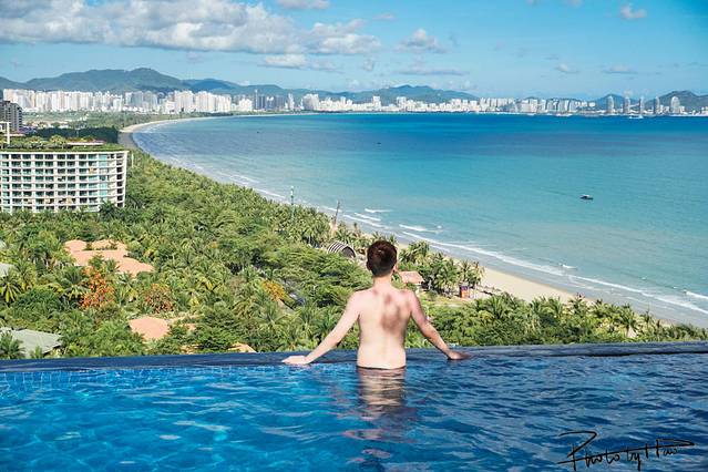 靠在泳池边可以远眺 三亚湾 尽头的凤凰岛,十分的吸睛。