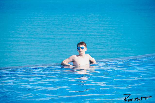 因为泳池的面积很大,而且是延展整个大楼边际线,所以完全没有拥挤的感觉,在不同的位置都可以拍出不同感觉的大片。