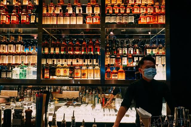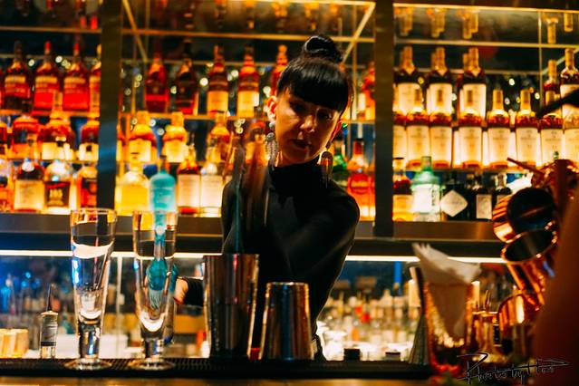 调酒师老练的调制出一杯属于每个人的专属鸡尾酒。