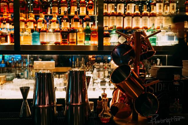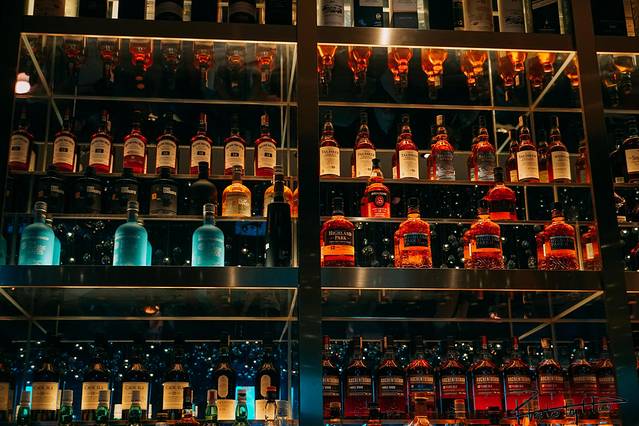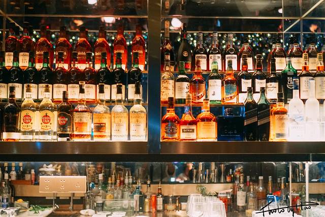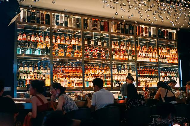 店里的装修风格是黑金Ins风,搭配上满墙的洋酒和玻璃杯,显得很有格调和质感。