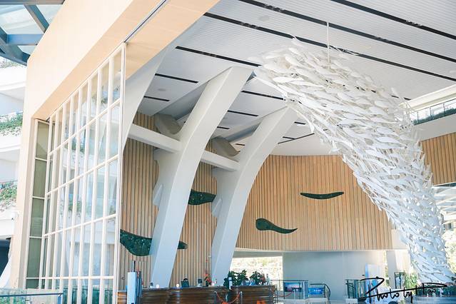 酒店内部线条流畅多变,开放式建筑使得环境更加的生态自然。
