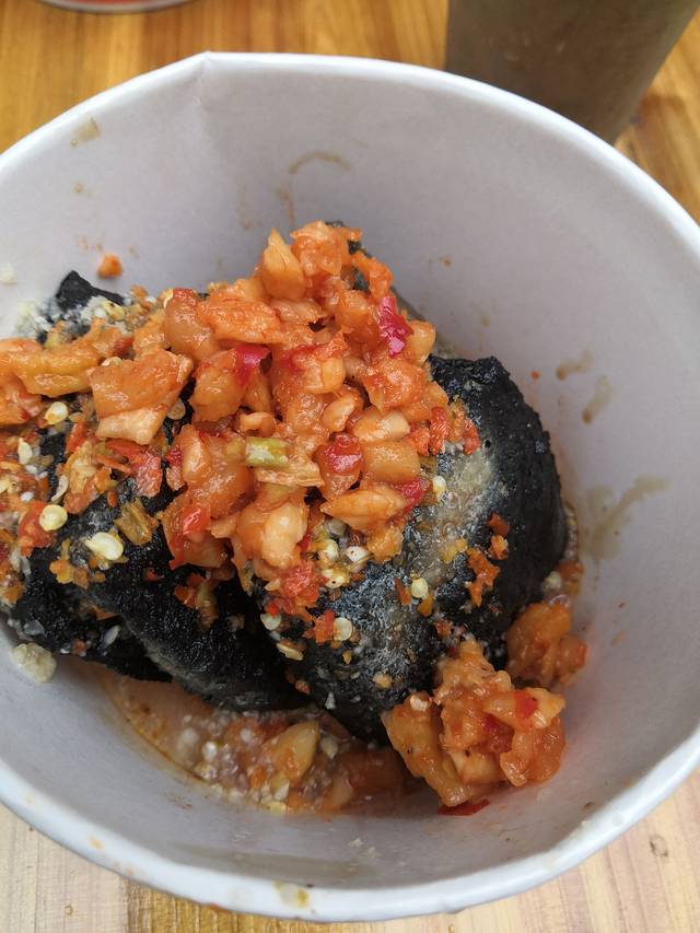 臭豆腐一般,只有萝卜干和蒜,汤汁少,没有香菜。