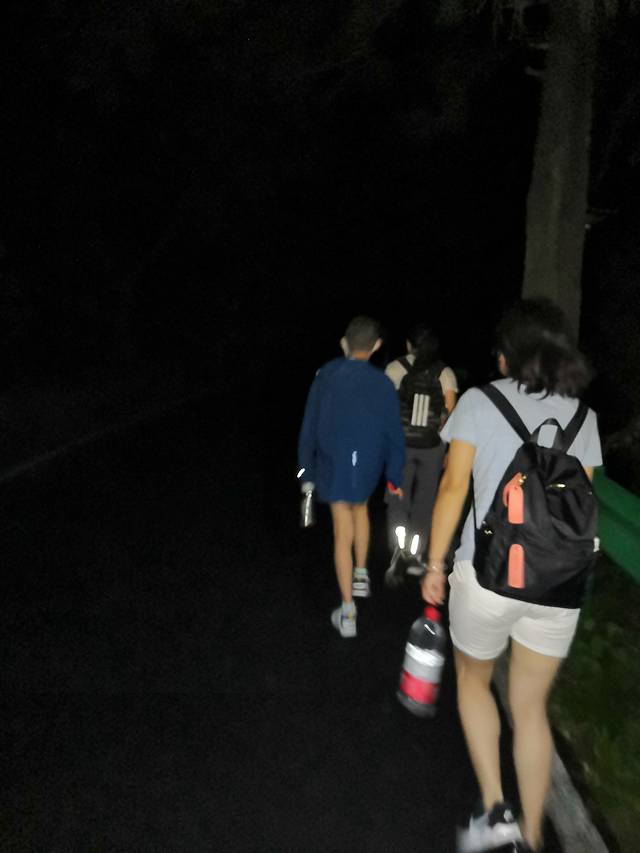 半夜2:30开始夜爬,南岳虽然山不高,但是公路都很陡,白天摆渡车走过时都能看到轮胎附近冒着白气(估计是刹车片发热)。所以走起来也很费劲。