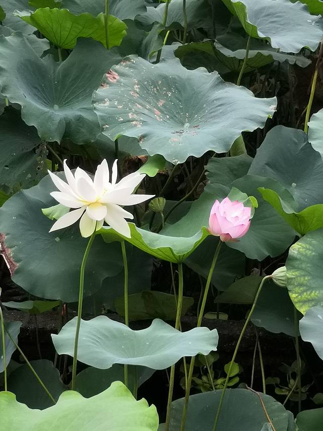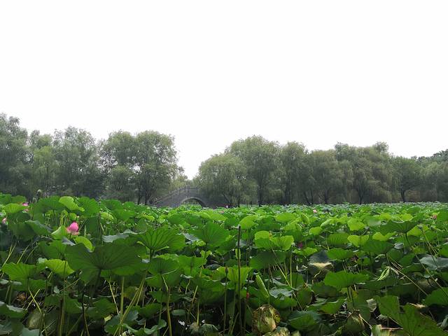 酒店附近的西湖公园是个晨练的好去处。公园的池塘里开满了荷花,在碧绿色的荷叶衬托着多色的荷花,有红色的,白色的还有粉色的;有的含苞待放,有的张开了两三片花瓣,有的全部盛开了,吸引着晨练的人们驻足留念。