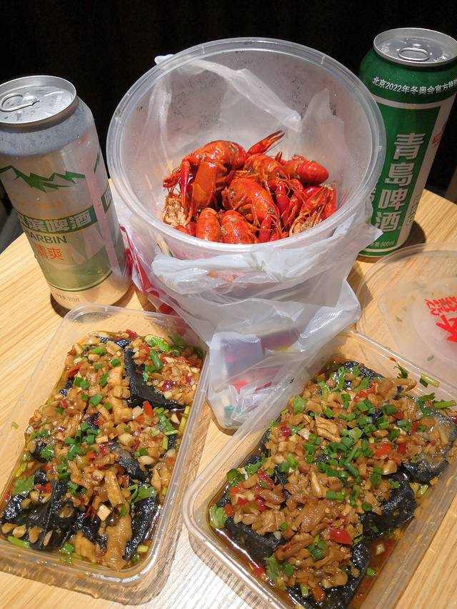 散完步回到酒店闲来无事就又叫了外卖,一份口味虾,两盒臭豆腐外带两瓶🍺,好饱呀。